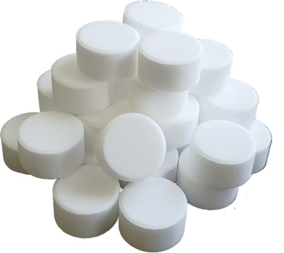 • Высокая механическая прочность: Таблетки не крошатся при транспортировке и засыпке, что минимизирует образование солевой пыли, которая может засорить систему.